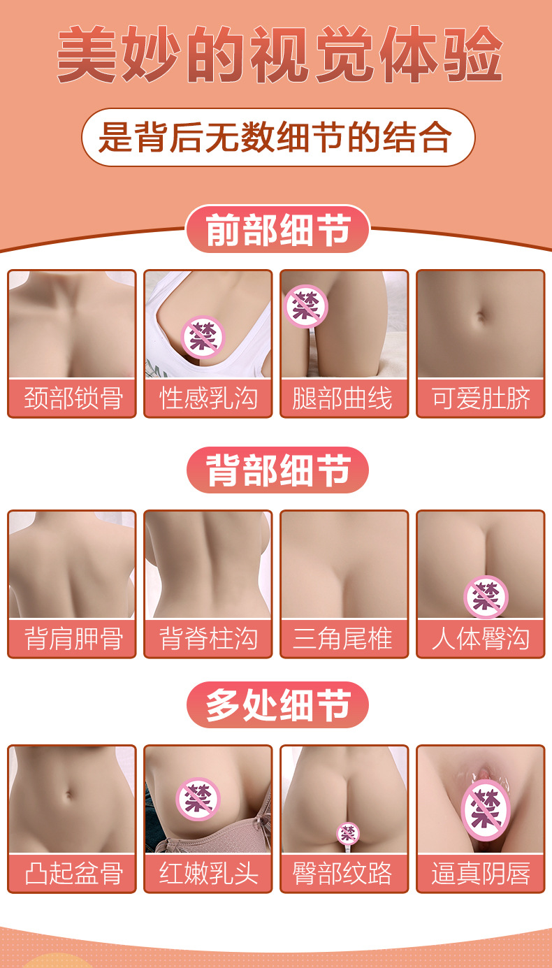 材质真的不错,有皮肤的质感,挺沉挺厚实丰满的一大块,细节上也挺出色。使用起来的话,感觉很接近真人的体验,通道里边有棱有纹理,有很多凸点,里面有很多小颗粒的感觉,可以全面感受到整个玩具的触感,进去出来会带来很线性的舒服,啊,说的我都有点受不了了,真的挺好的,值得一试,总体上也比较好清理。