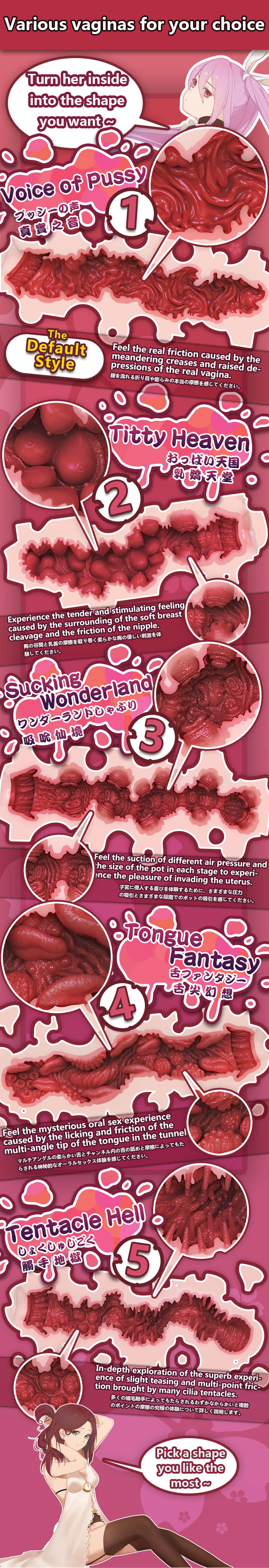 - Designed and built by professional designers with independent advanced production methods. All appearance and interior are designed according to the real internal of the female body, simulate the real human body extremely.